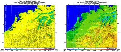 Weinig wind, en de wind die er is recht op de baan. Veel thermiek tot 1500m.